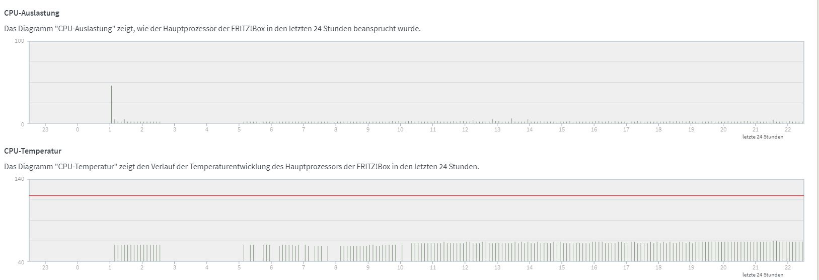 Aber der Vollständigkeit halber, ich habe auch eine Fritzbox 6591, und das 24h Diagramm zeigt keine nennenswerte größere CPU Auslastung. Und ich habe mehr Geräte im Netz. Aber wie gesagt, das muss nicht zwingend etwas sagen.