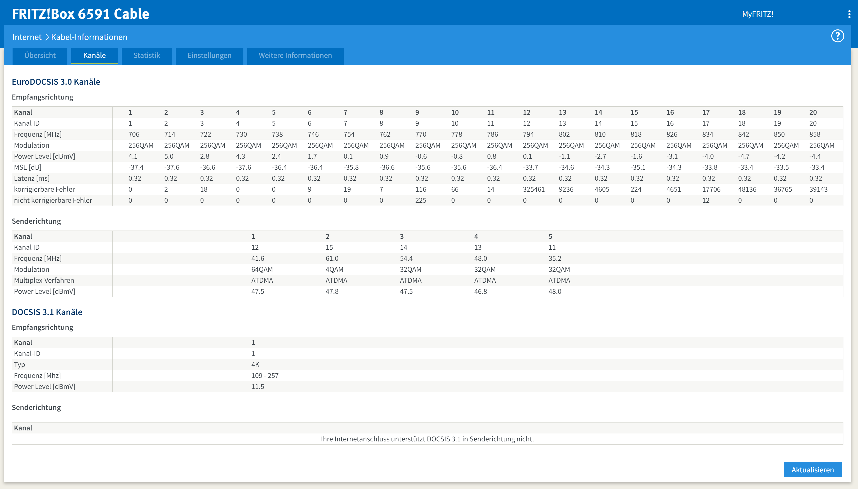 Der US mit QAM 4 und 32 ist seiner Meinung nach ok.