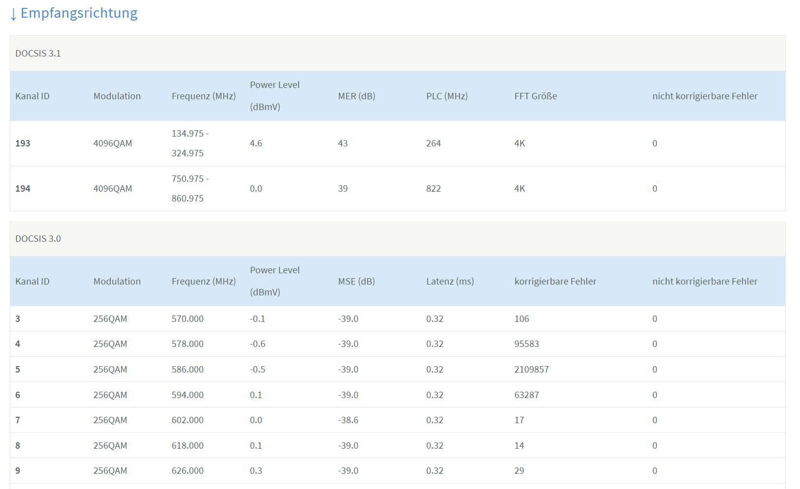 meine Fritzbox 6591 an einem Vodafone Gigabyte-Anschluss muss in unregelmäßigen Abständen (so alle 2-3 Tage) neu gestartet werden, weil die Internetverbindung zusammenbricht. Die Internetverbindung wird in der Boxoberfläche als verfügbar angezeigt und auch sonst wird keine Fehlermeldung angezeigt, aber keins der Endgeräte kann Webseiten aufrufen oder es geht sehr langsam (meist so langsam, dass ein Timeout erfolgt). Gelegentlich werden auch die Rufnummern als nicht registriert angezeigt. Die Verbindung zur Box (getestet mit jperf) ist schnell. Bei einem Neustart der Box geht wieder alles flott für ein paar Tage. Der VF Kundenservice hat mir einen Werksreset vorgeschlagen und mir neue Zugangsdaten für die Telefonnummern mitgeteilt. Ich hatte dann ein paar Tage Ruhe, aber nun habe ich das Problem wieder.