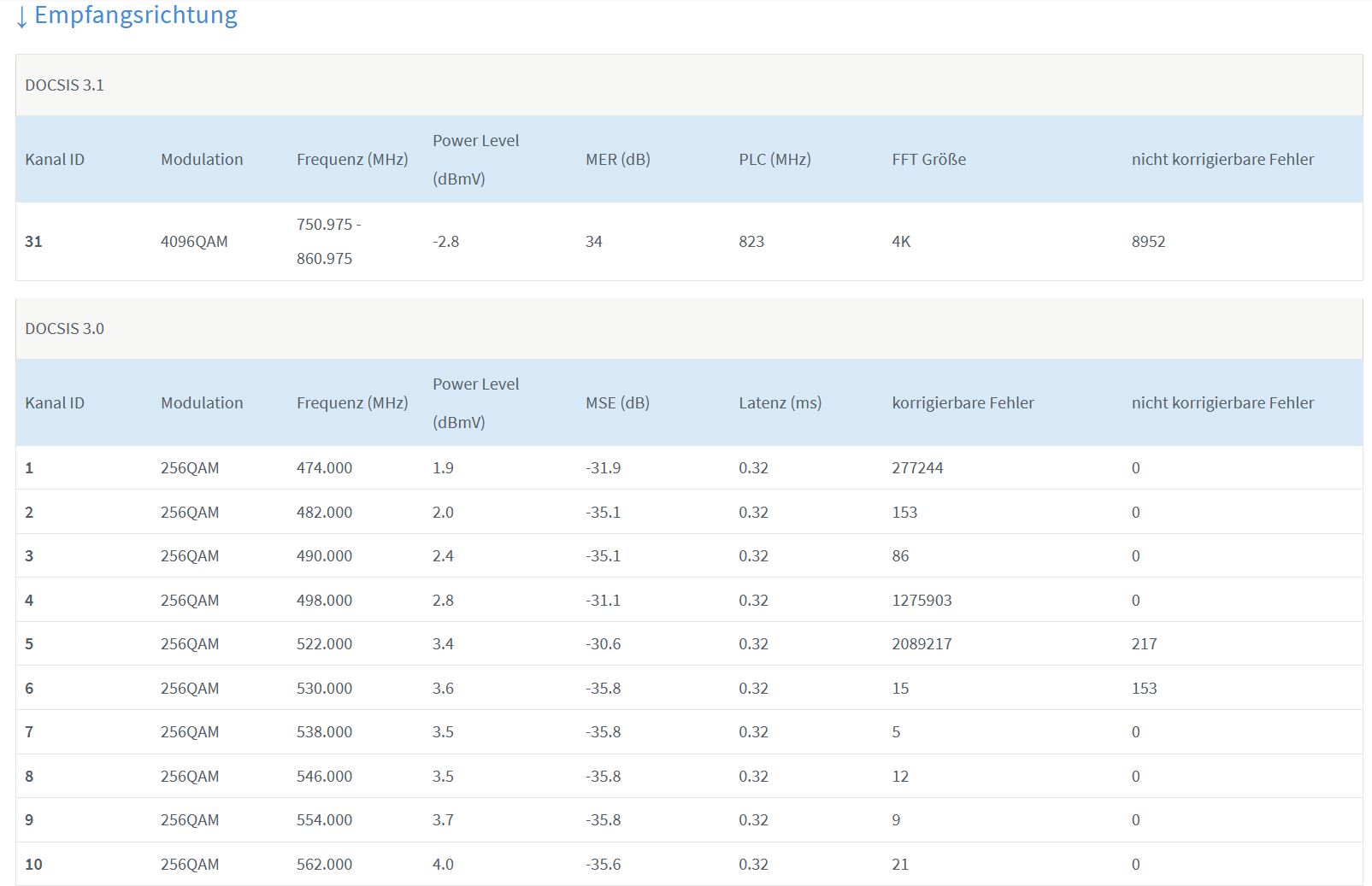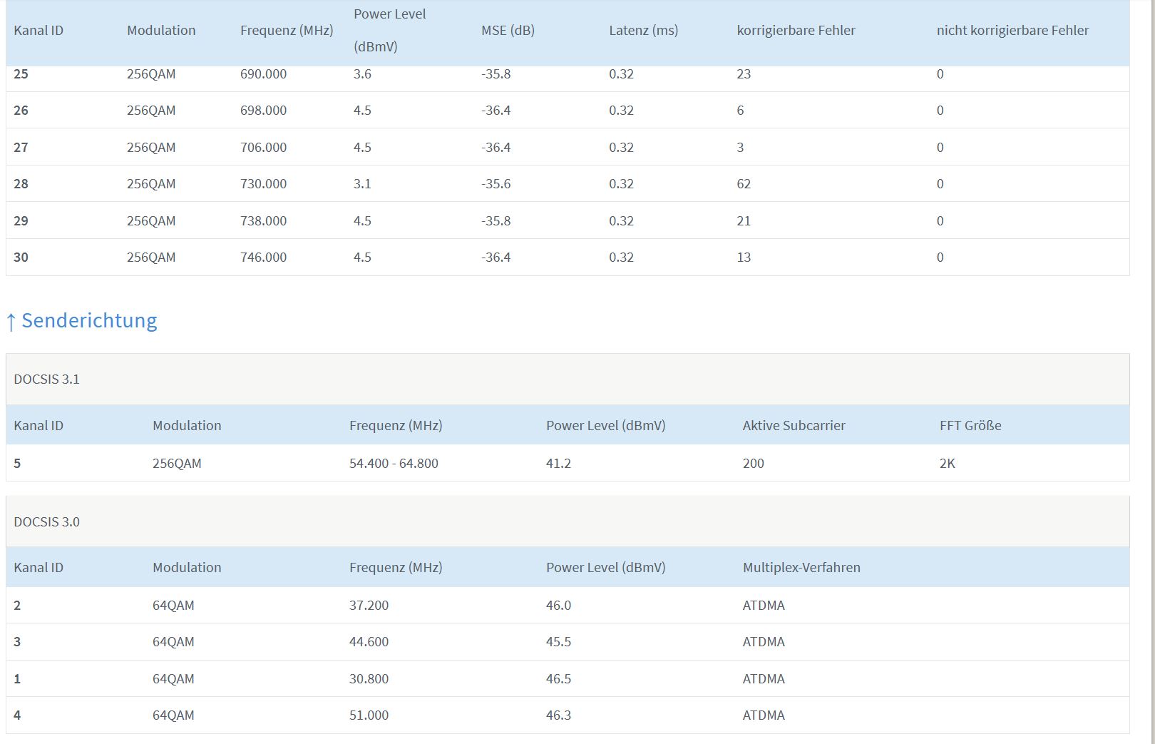 In der Fritzbox selbst sieht man keine Fehler ( unter Ereignisse ). Da scheint alles stabil zu sein.