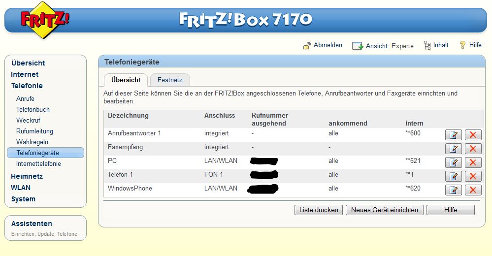 -> Fritzbox7170 -> SIP/Voip Client