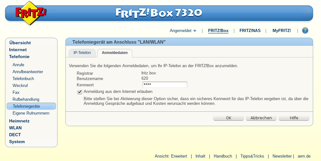 Also im Netzwerk kann ich schon per SIP Client zu meiner FritzBox verbinden.