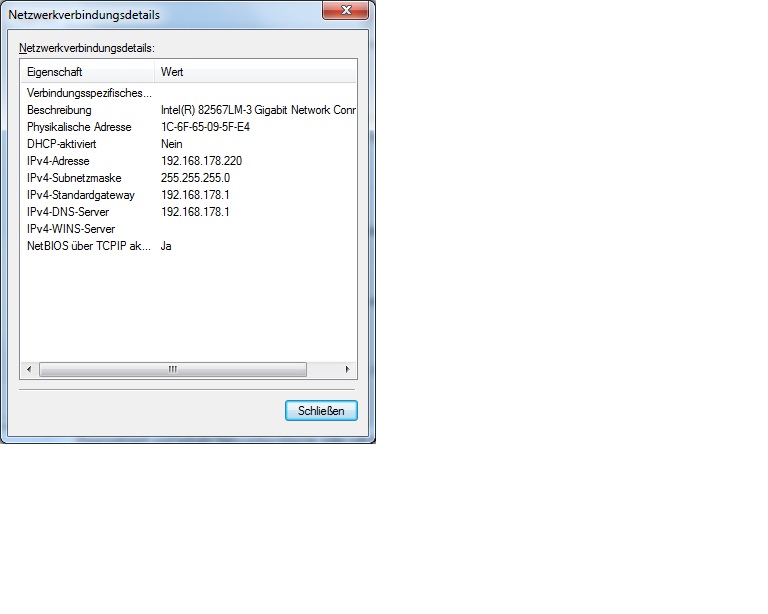 Am PC unter Netzwerkverbindungen sehe ich in den Details, dass Pakete gesendet aber keine empfangen werden!