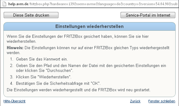Nun möchte ich gerne das Backup der alten auf die neue aufspielen. Das geht allerdings nicht, da immer beim Einspielen der Backupdatei nach einem Passwort gefragt wird. Ich könnte mich nicht dran erinnern beim Export ein Passwort gesetzt zu haben und das mein Standardpasswort für die Fritzbox tut auch nicht. Wie bekomme ich nun die Einstellungen wiederhergestellt? Oder kann das auch daran liegen, dass die neue Fritzbox eine neuere Firmware hat. Das Backup stammt von der 84.05.21, auf der neue Fritzbox ist aber schon 84.05.22.