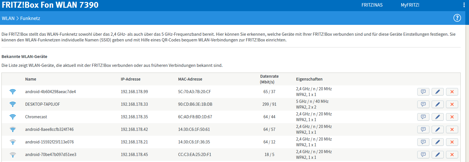 ich sitze hier ratlos vor einer FritzBox 7390. Die Verbindung über Lan ist perfekt (Ping <1ms). Ander sieht die Sache bei einer Verbindung über das W-Lan aus. Hier treten extreme Pingschwankungen auf: