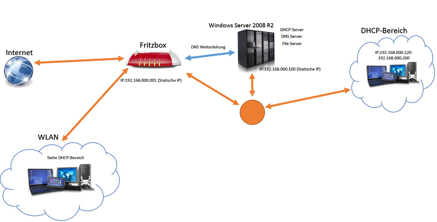 DHCP-Server läuft auf einem Windows-Server 2008 R2 IP:192.168.0.100