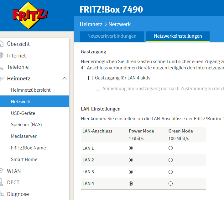 Ich würde gerne bei meiner Fritzbox 7430 den Powerlan Mode aktivieren allerdings finde ich den reiter lan Einstellungen erst gar nicht??? Die erweiterte Ansicht ist natürlich angeschaltet...