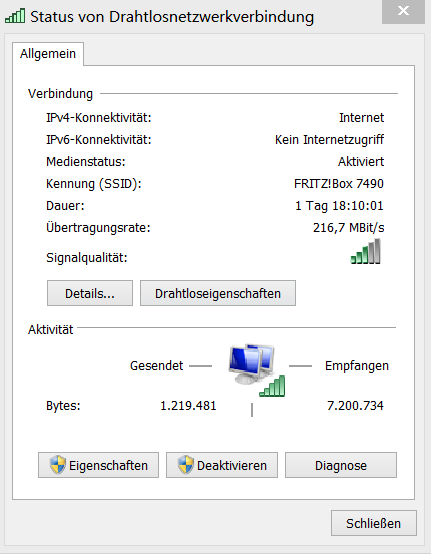 Unter "Drahtlosnetzwerke verwalten" (in Windows7) wurde mir die neue SSID (FRITZ 7490) sofort angezeigt, mit der ich mich mit meinem PC verbunden habe. Jetzt wird mir bei der Übertragungsrate auch 450 MBit/s angezeigt.