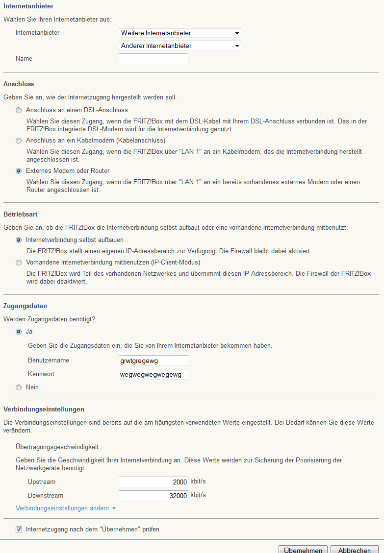 Ich habe es mehrmals versucht über LAN 1 der FB und dem Port der Fiberbox zu verbinden aber es geht nicht. Via normale Telefondose und Eingabe der Zugangsdaten geht ebenso nicht. Als Fehler kommt dann immer von der FB "Die DSL Leitung ist gestört."