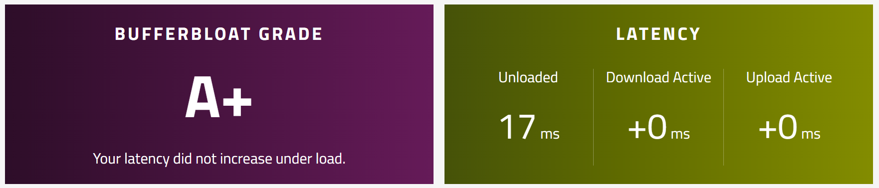Grundsätzlich war ich zufrieden mit der 7590, bis ich auf die Thematik mit dem Bufferbloat gestoßen bin. Ich muss gestehen, dass ich in der Praxis keine Symptome davon bemerkt habe. Der Bufferbloattest ergab jedoch ein Ergebnis von D und die Upload Latency beim Cloudflare Speedtest war meist um die 109 ms.