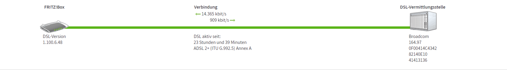 Wow, 100/40! Wie hast Du denn das geschafft? Oder bei wem?bezelbube schrieb:... zeigt dir die Fritzbox dann in etwa dieses an.