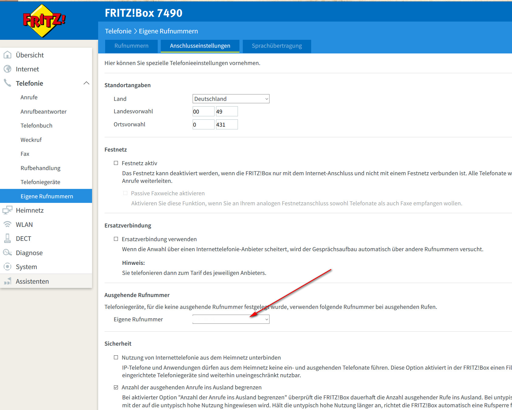 Was mich wundert: es gibt eine Funktion unter "Eigene Rufnummern - Anschlusseinstellungen", bei der ich wohl umstellen kann, welche unserer Nummern dem Angerufenen als von uns "ausgehend" bei ihm anrufend erscheint. Das hätten wir jetzt gern eingesetzt in einem Szenario. Allerdings greift die nicht.