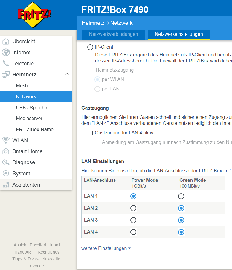 - FritzBox 7490 (habe die LAN-Ports auf 1 GB gestellt)
