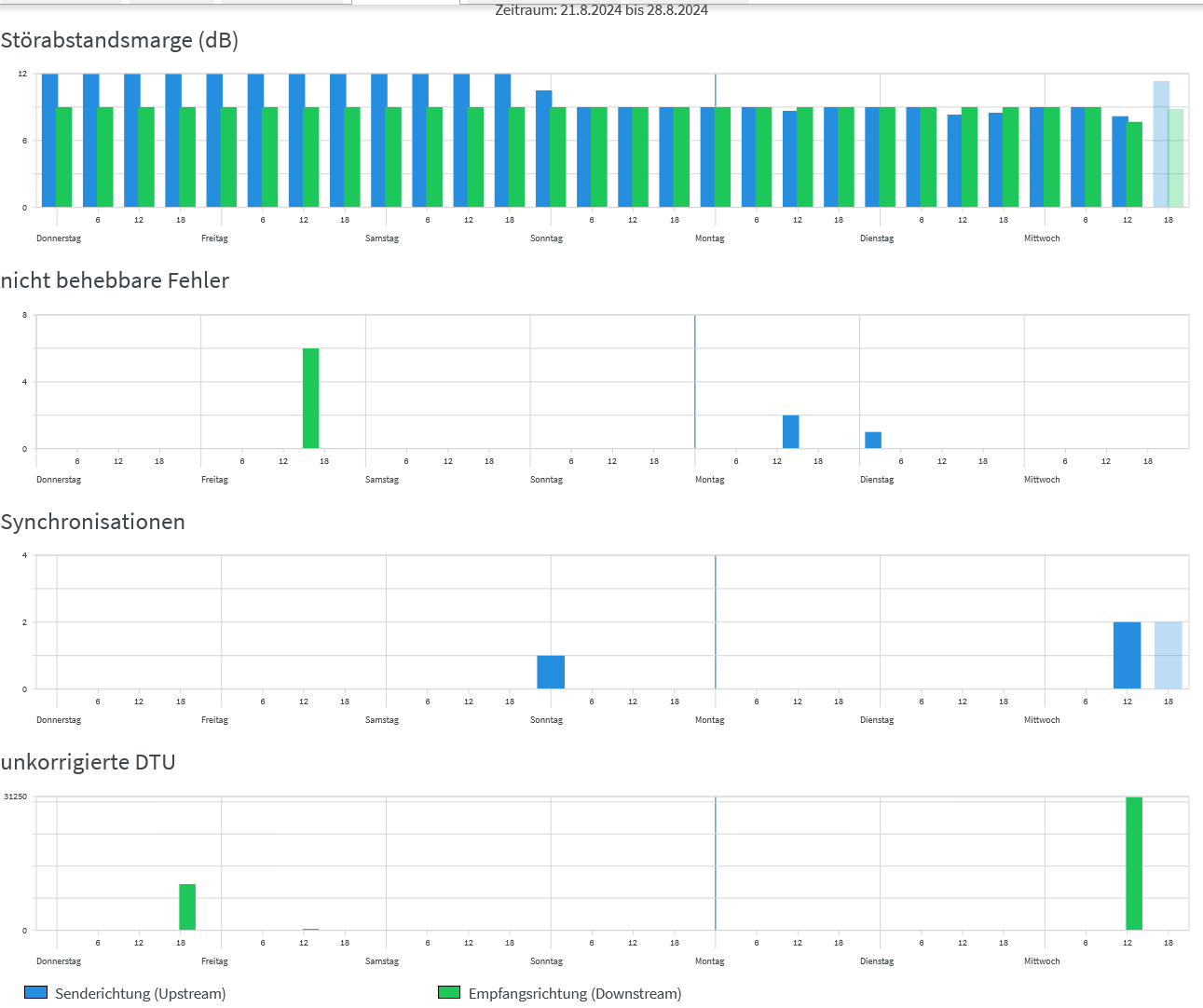 bitte lasse uns noch eine Woche beobachten, ob die Datenraten sich nicht doch wieder von alleine nach oben reguliert.