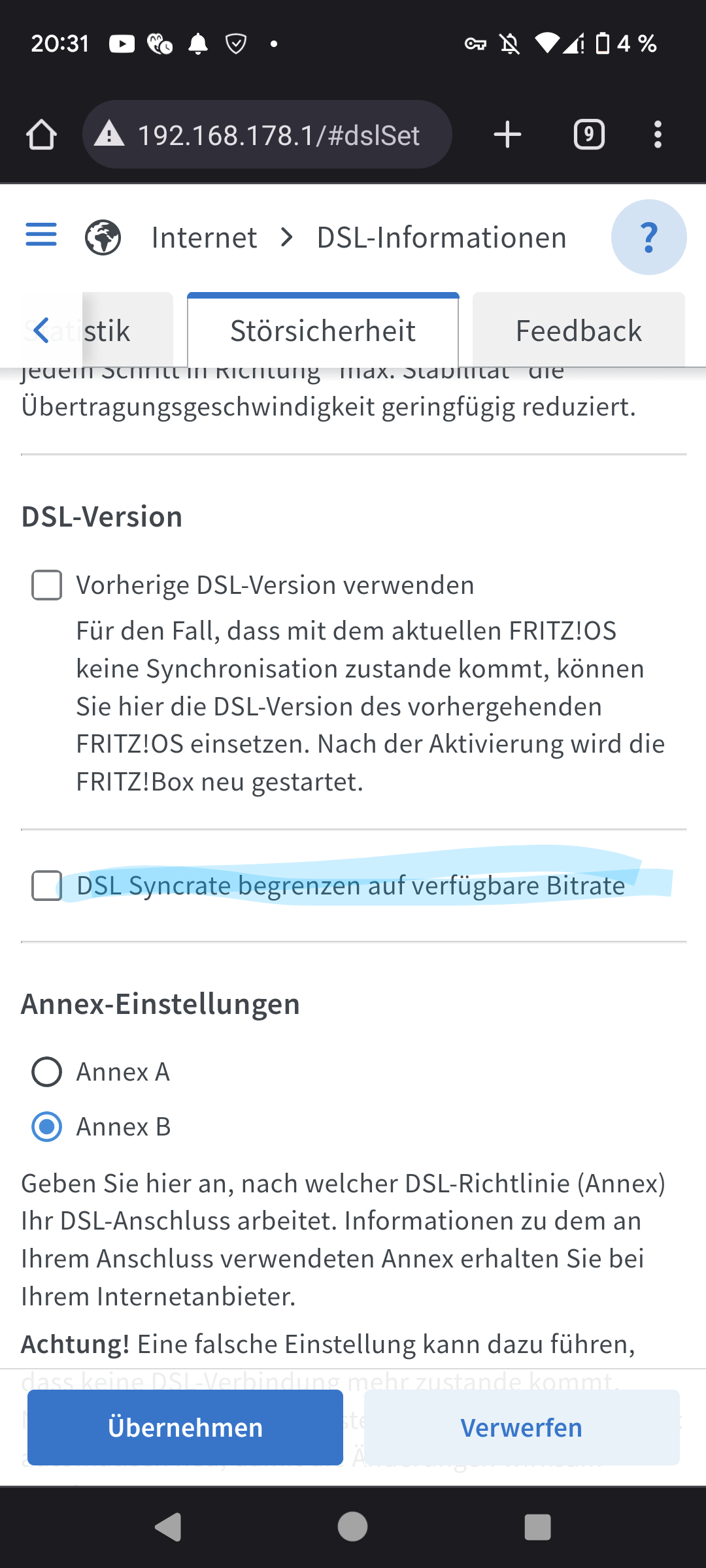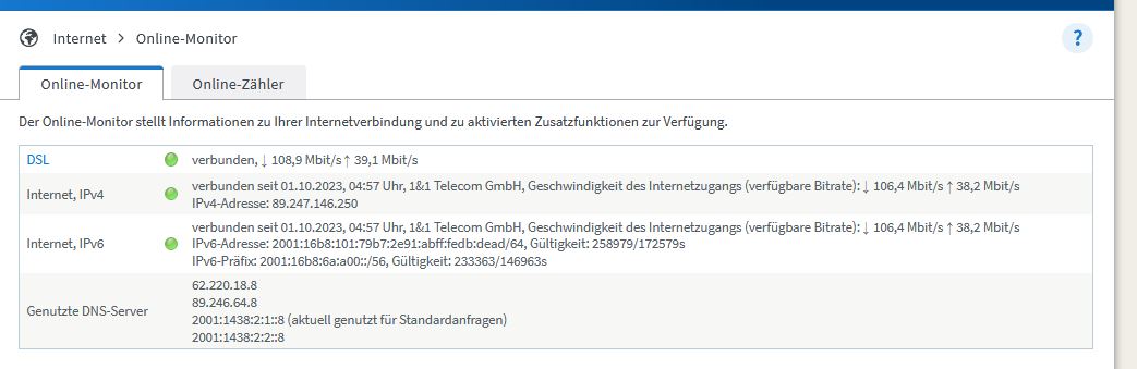 Eine Fehlermeldung hatte ich mit der neuen Konfig dann doch bekommen, die Fehlermeldung trat heute Morgen bei der Zwangstrennung und der neuen Verbindung auf.