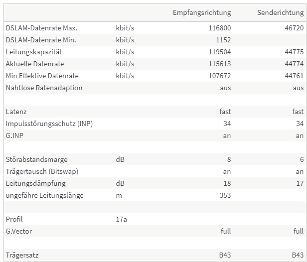 DSL ist verfügbar (DSL-Synchronisierung besteht mit 115790/43783 kbit/s).