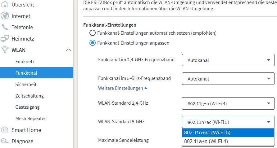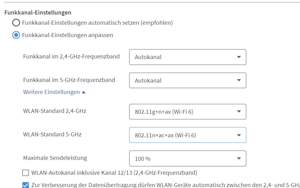 Die Wlan Namen habe ich bereits getrennt, Kanalsuche ist automatisch und WPA2/WPA3 aktiviert ....