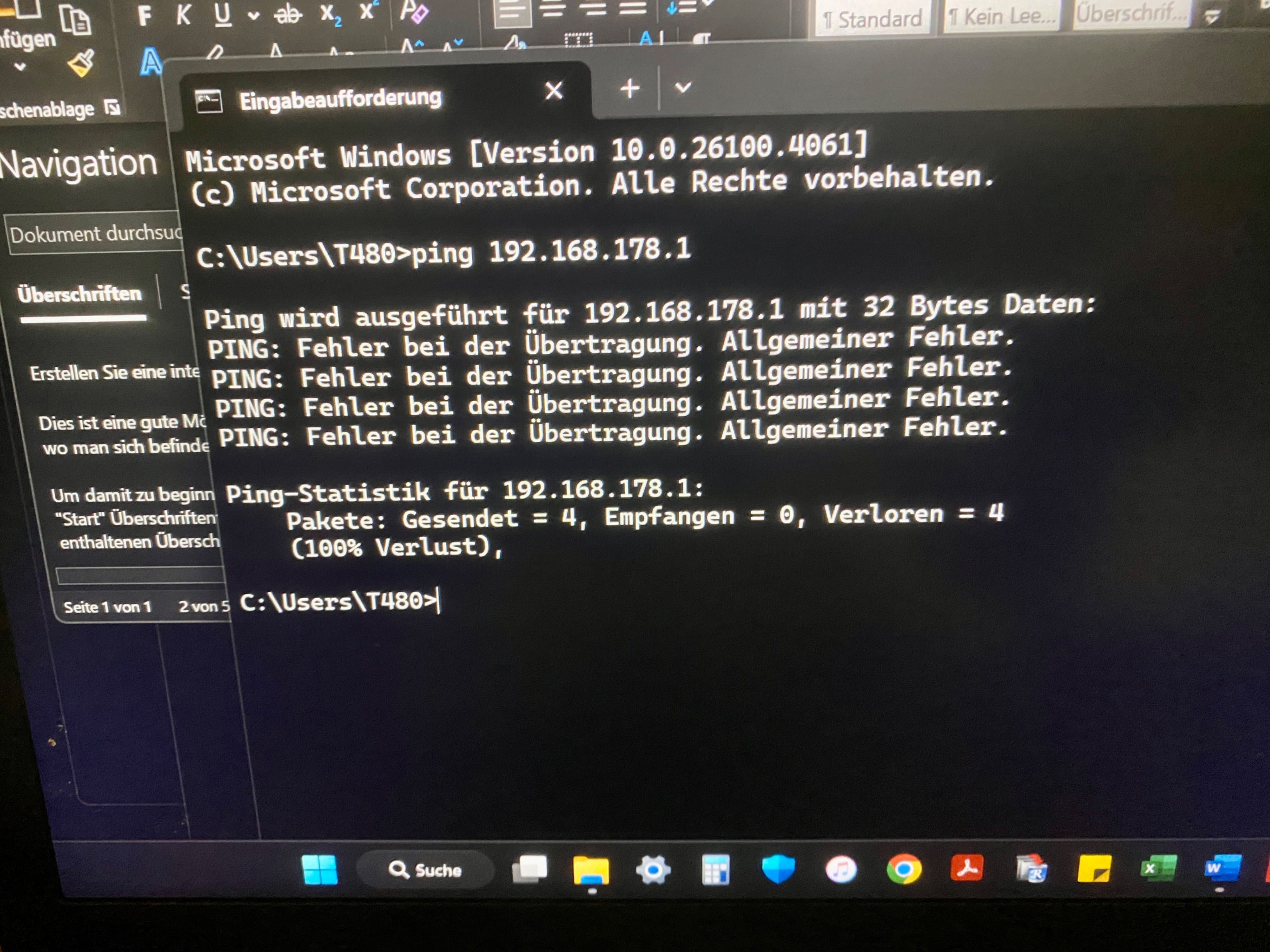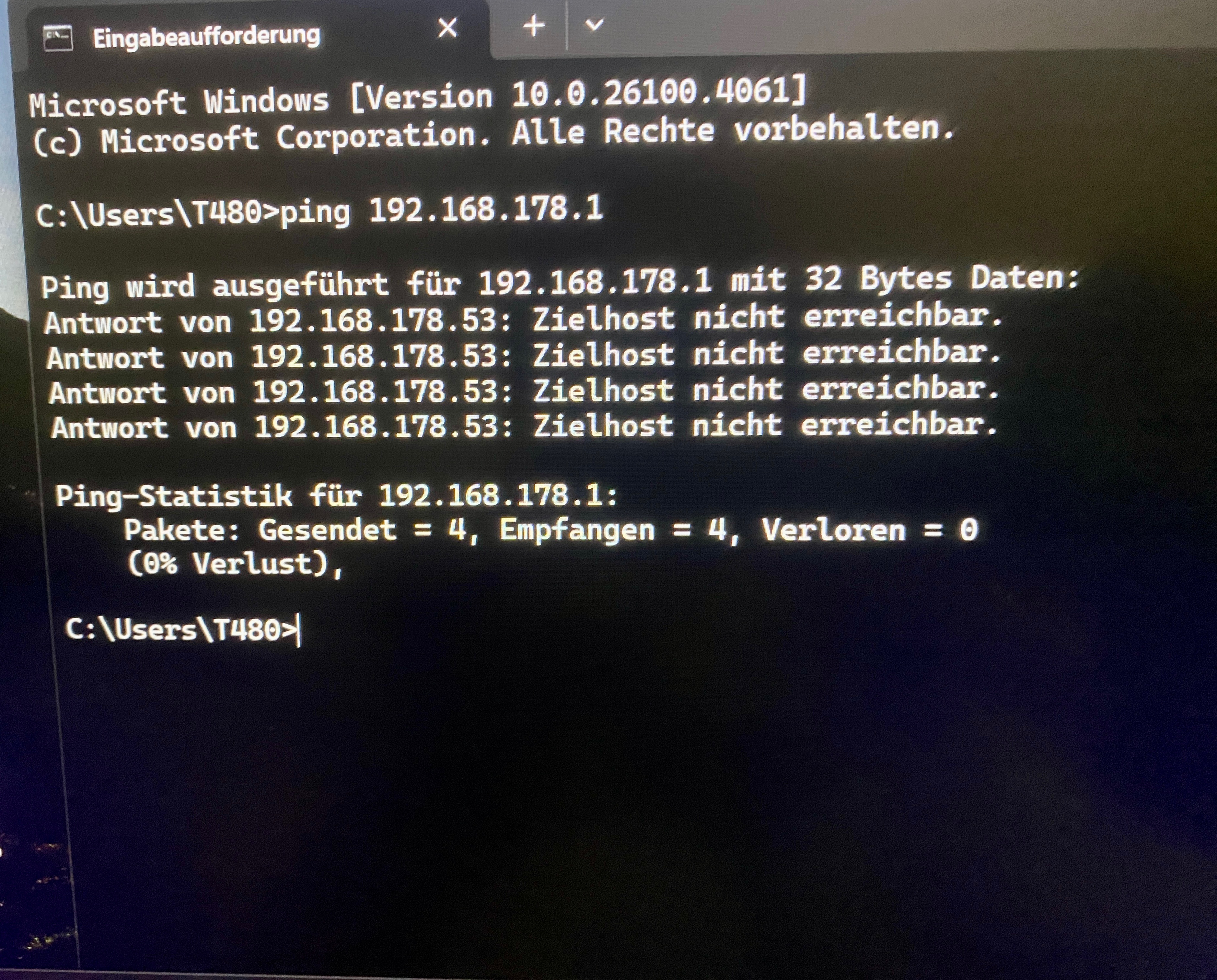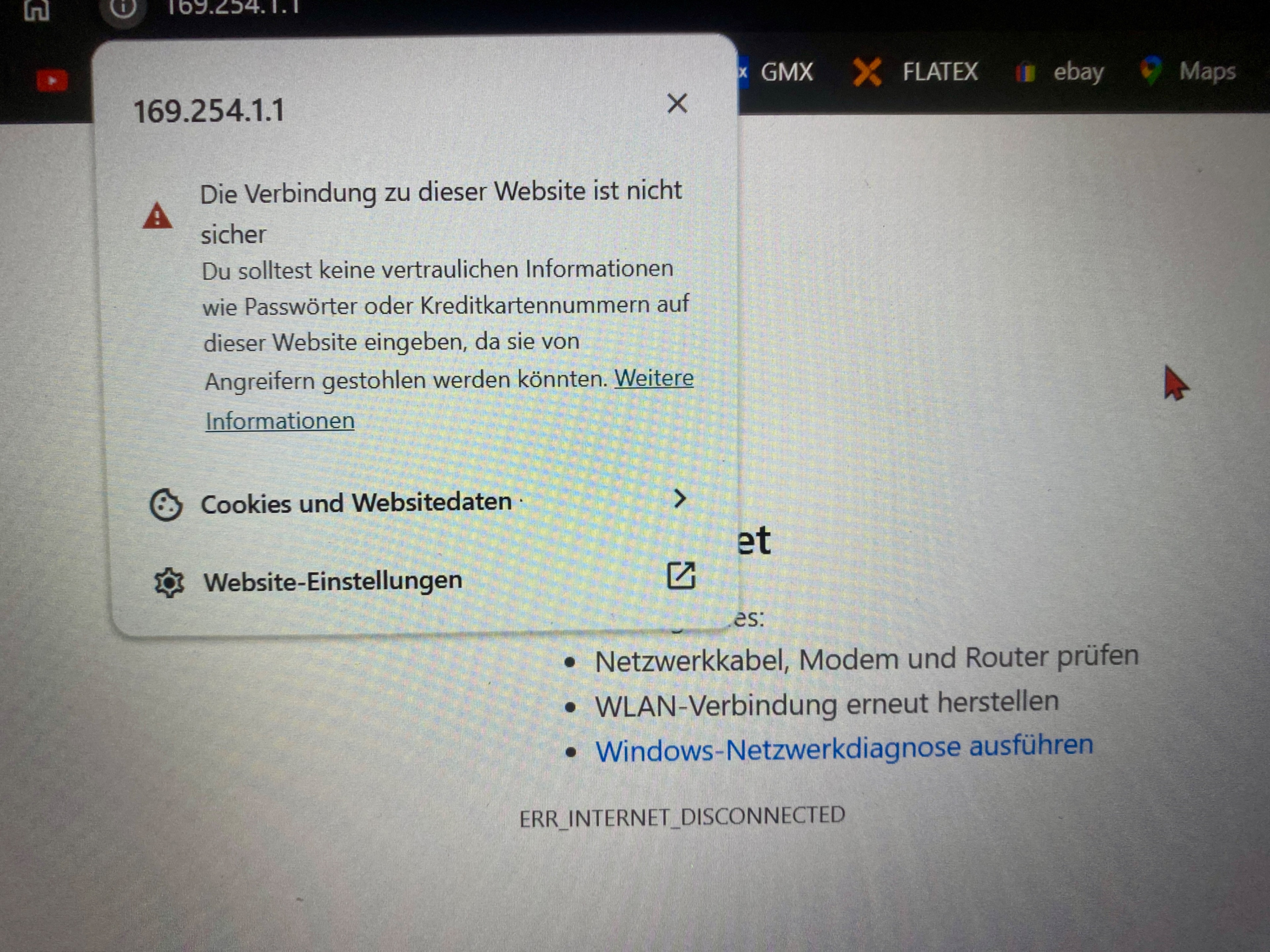 Habe es auch mit einem Netzwerkkabel versucht aber das gleiche.