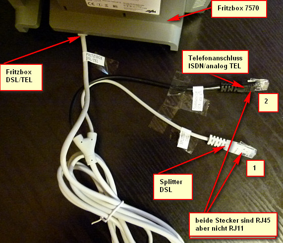 Fritzbox 7570 RJ45 auf RJ11 richtig für Internet verkabeln
