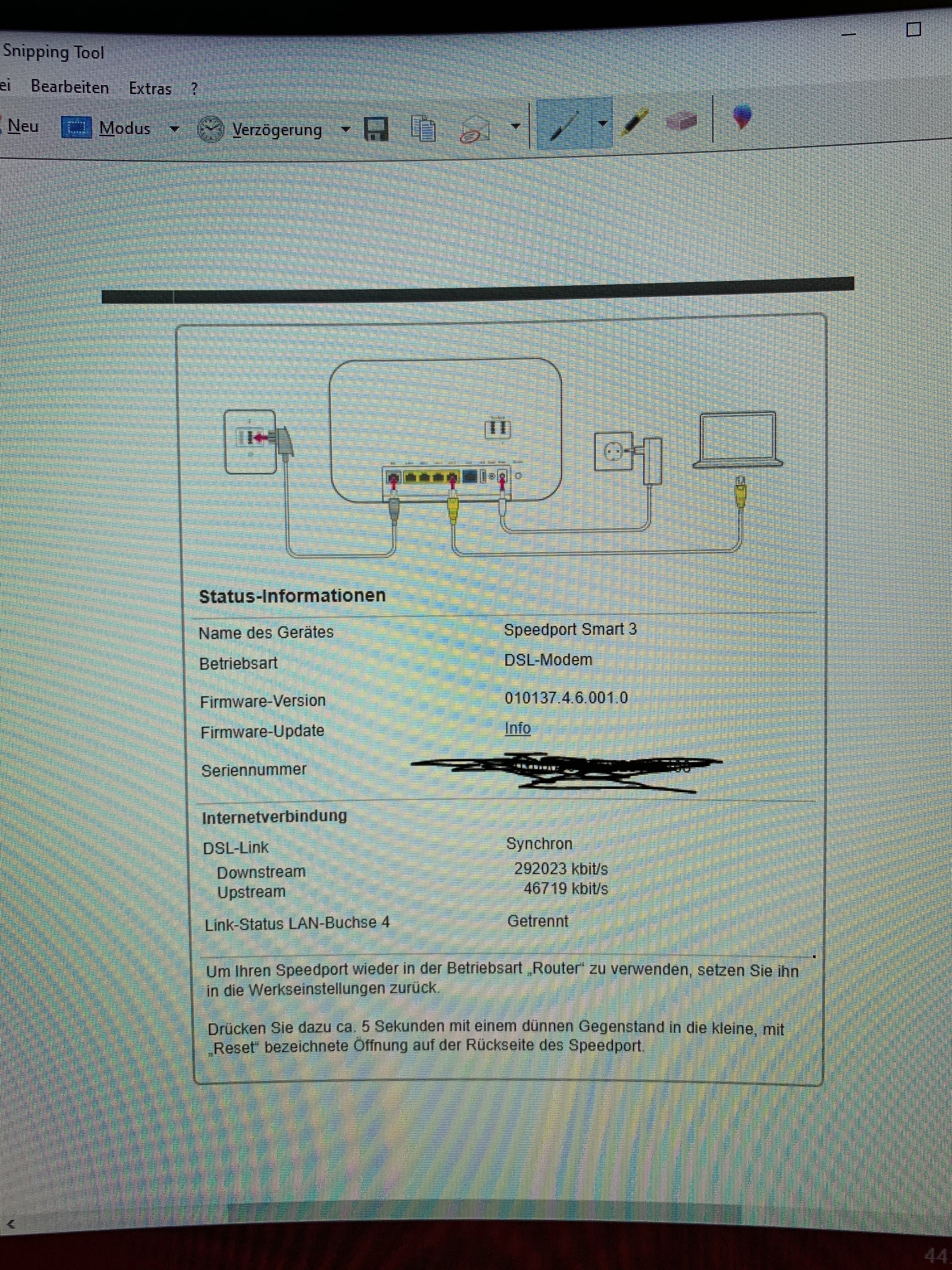 Der Speedport gibt auch so herrlich wenig Informationen her. Wenn du dich mit dem Speedport verbindest an LAN 1 oder so. Kommst du dann noch auf diese Seite?