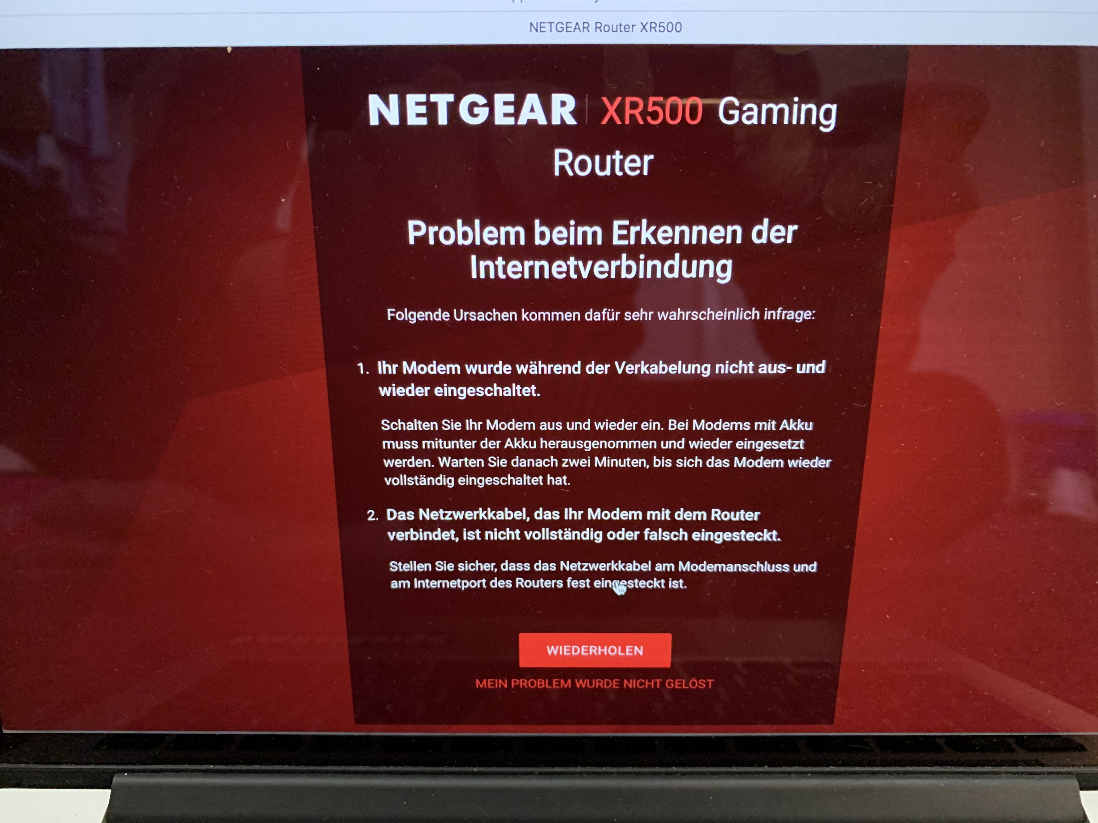 Ergebnis nach dem automatischen einrichten des Routers. Beide Fehlerlösungen wurden schon tausend mal von mir ausgeführt / geprüft.