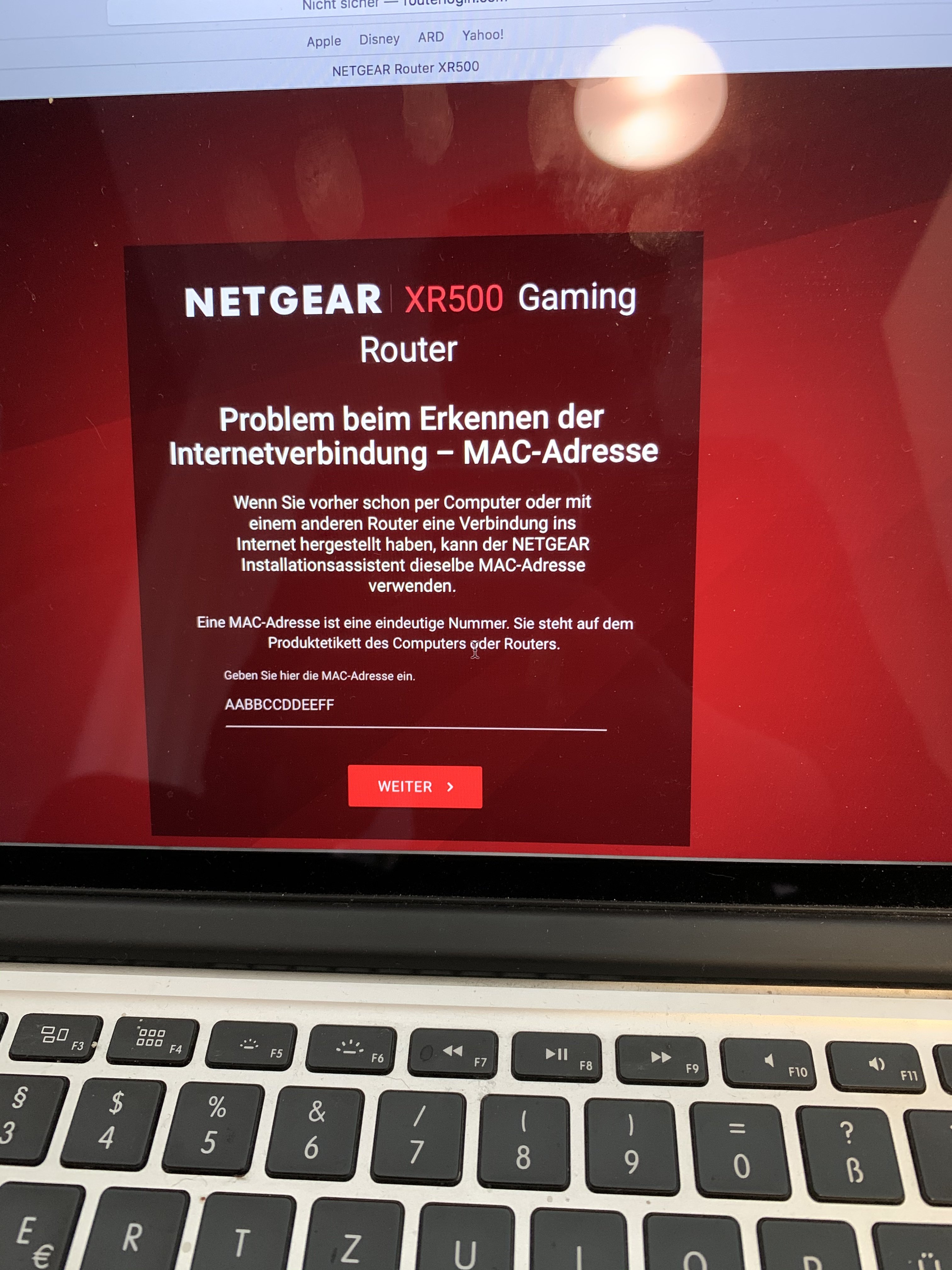 Das passiert, wenn die Fehlerlösungen nicht funktionieren. Aber welche Mac Adresse ist gefragt? Die des Modems? Die des PCs, der vorher schon im Internet war?