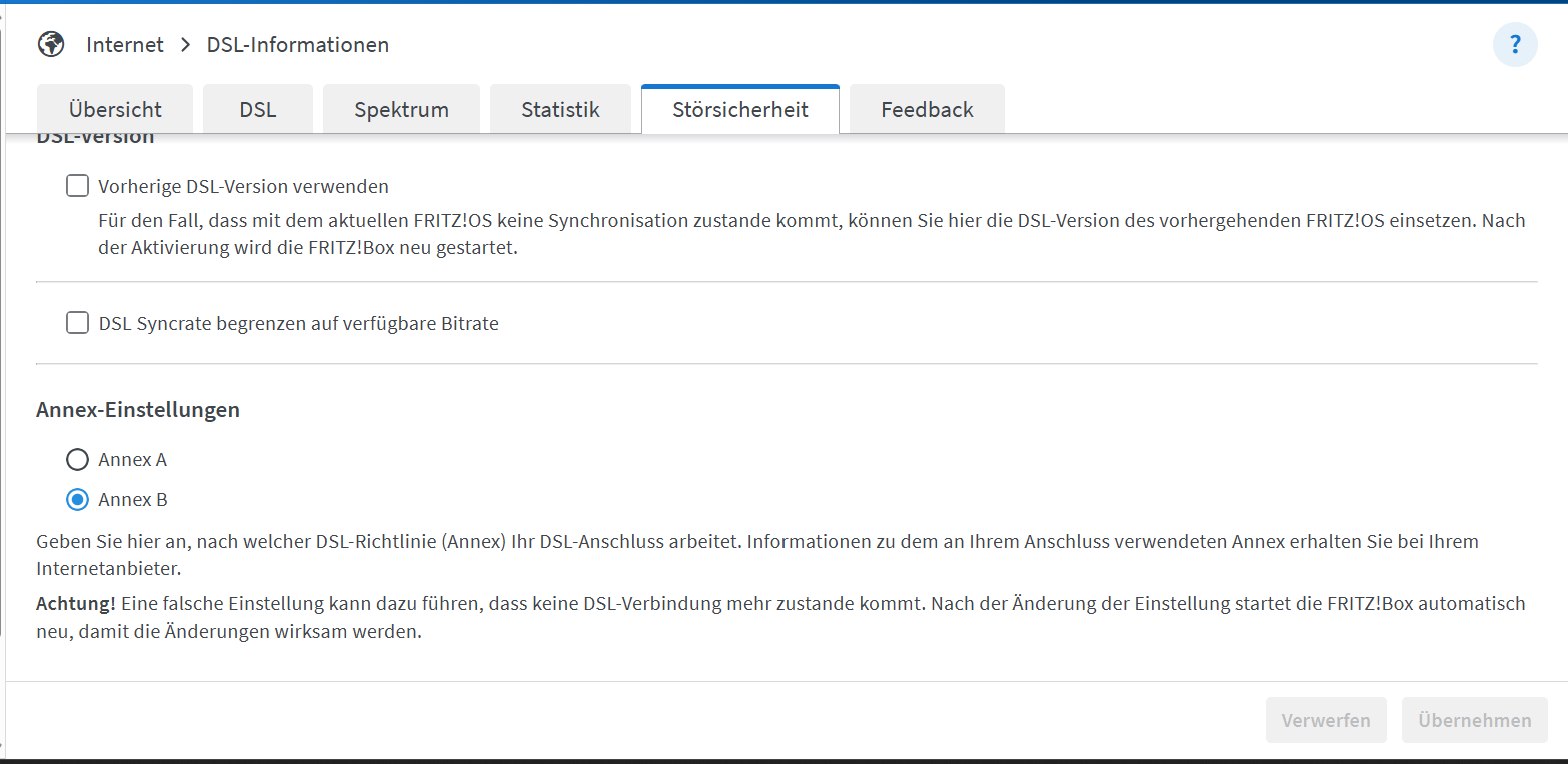 Einen Auszug aus den Systemmeldungen und Screenshots aller DSL-Werte (Übersicht, DSL, Spektrum, Statistik) wären hilfreich.