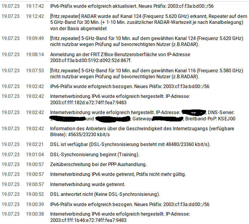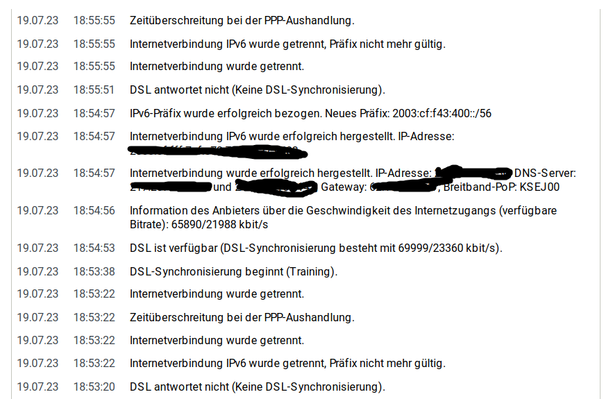 In den letzten Tag war es schon extrem. Hab mir dann einen neuen Router Fritzbox 7590 AX gekauft. Aber das Problem besteht immer noch. Immer wieder wirft es mich raus. Hin und wieder startet er neu.