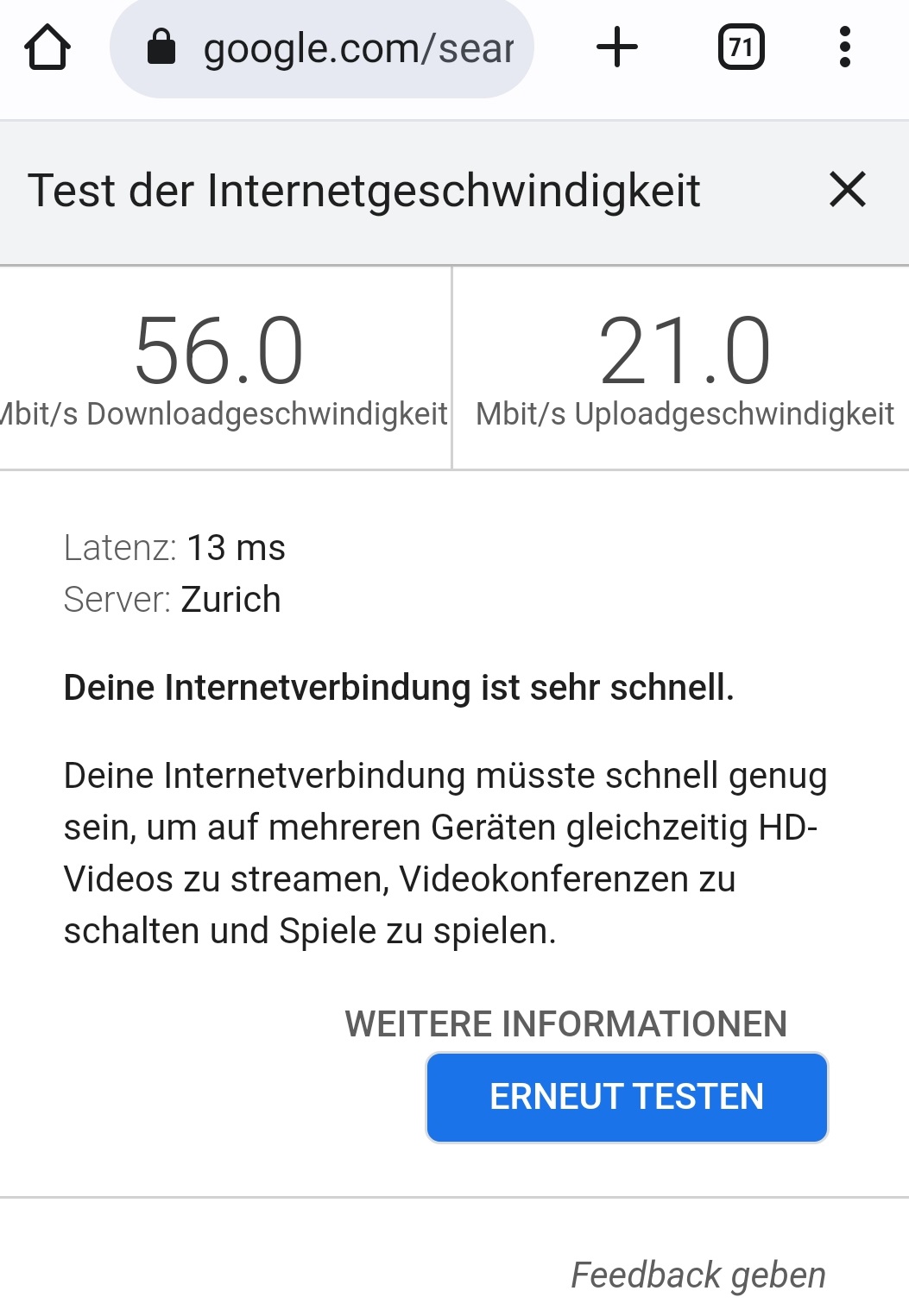 Du hast recht. Hab gestern den Speedtest gemacht. Ich komme aber nur auf 56/21. Das ist ja auch ganz schön schwach bzw. ne Verarschung. Bezahle 100/40 und krieg nur hälfe davon._anonymous0815_ schrieb:Hast Du das jetzt selbst beheben können oder besteht der Fehler immer noch? (Ist nur eine Frage aus Neugierde, mich würde ja interessieren ob die dann mit den vollen 100/40 synct wenn der Fehler behoben wurde)
