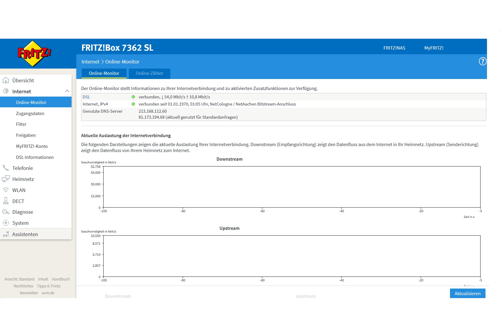 -Die Box ist laut Übersicht verbunden, 50 mbit im Down und 10 Mbit im Upstream (bei einem 50 Mbit Vertrag, Netcologne)