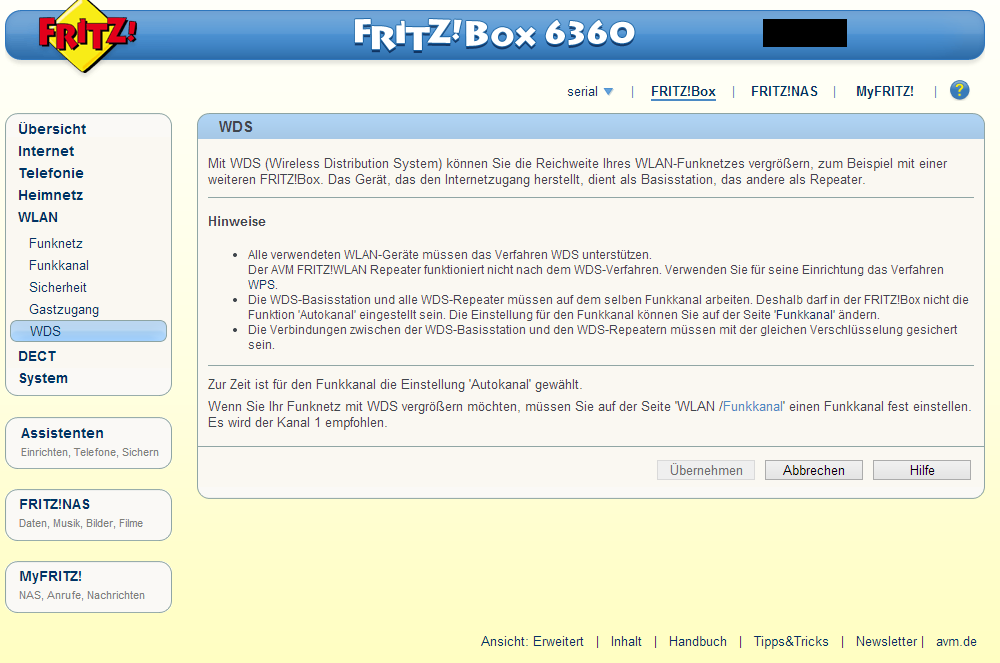 Maehh, alles klar, hatte nicht mitbekommen das WDS zuletzt schon wieder raus genommen wurde, das gab es nämlich schon einmal und da hatte AVM es mit F!OS 5.28 oder 5.50 erst wieder rein genommen.