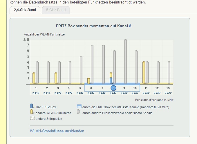 Ich gehe ins Menü und versuche Kanäle auszuwählen das von Niemanden belegt wird bzw. keine große Störquelle da ist.