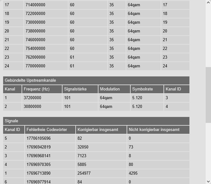 Melde mich nochmal zum Thema. Es gab - wie zu erwarten - keine Verbesserung seither. Ich warte auf das neue Kabelmodem von Vodafone. Das kann dann Docsis 3.1.