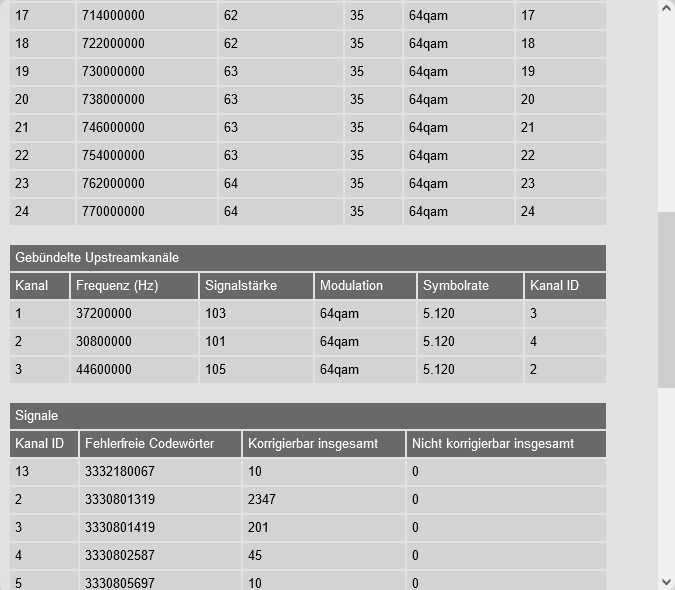 Es wurde ein Verteiler in meiner Straße getauscht, an dem auch meine Leitung hängt. Es hat sich nur leider nichts gebessert. Von 4 Uploadkanälen sind es jetzt wieder nur noch 3 und die Download- und Upload-Raten schwanken wild umher.