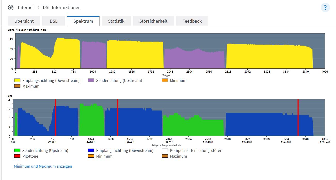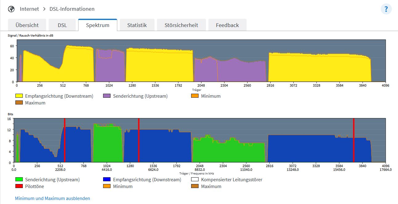 Jedefalls frage ich mich ob das jetzt ein Zufall war, dass das DLM im MSAN/MFG zu schnell die Leitung runter gesetzt hat oder ob ich externe Störquellen habe. An der Leitungslänge von unter 100 Metern die vielleicht real mit Kabellänge 50-60 Meter sind, kann es eigentlich nicht liegen.