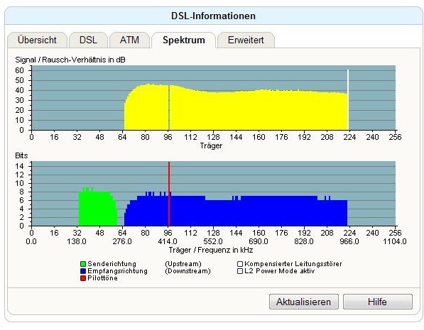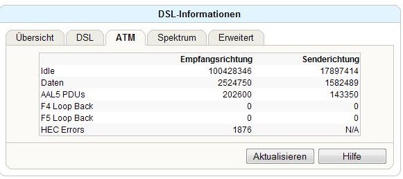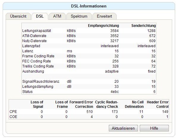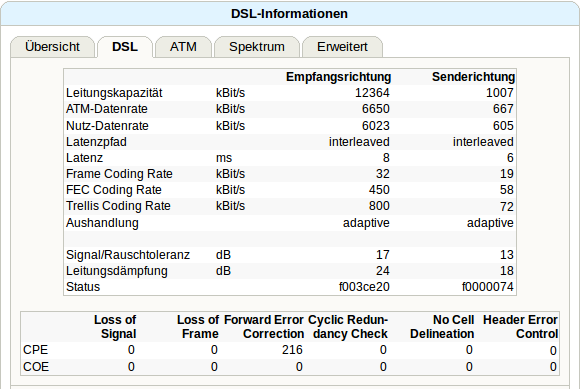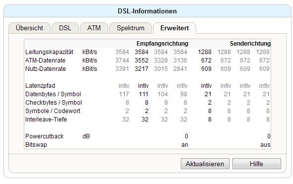 Die Leitungsdaten sind unauffällig ... Du bis via ATM geschaltet. @ GBE hättest du wohl eine deutlich höhere SNR. Später lohnt bei dir der Wechel auf Annex J
