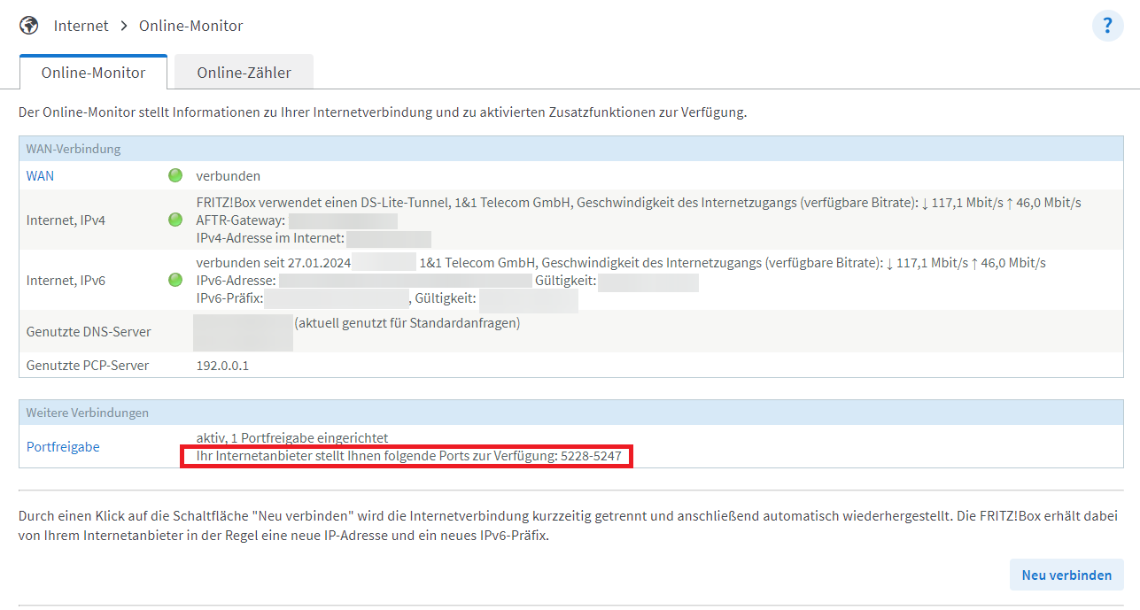 Wie genau hast du das denn getestet? Wenn du alles richtig gemacht hast, dann müsste das funktionieren.Jamuss schrieb:1 und 1 gestattet mir wieso auch immer nur port 5228-5247 zu benutzen, aber wenn ich als beispiel den 5228 port nehmen will dann geht der ebenfalls nicht oder der port 5247 auch nicht, es geht einfach kein einziger port