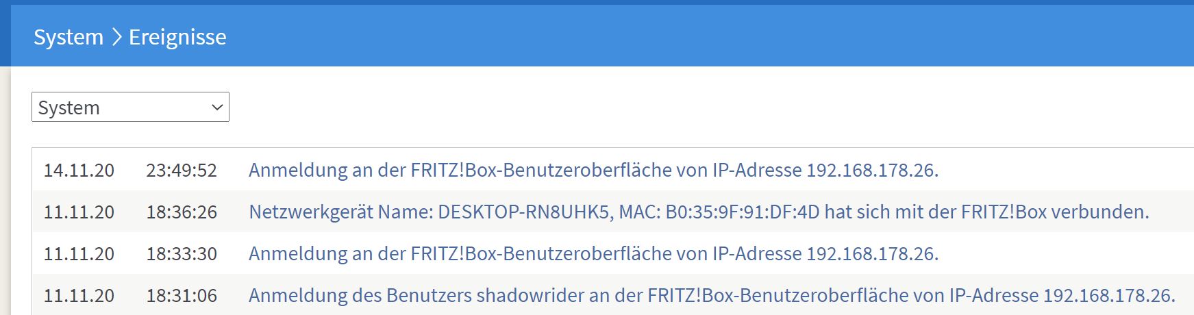 - Gibt es in der Fritzbox eine Möglichkeit das Einlogdatum einzusehen?