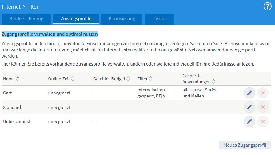 Man kann zwar das Zugangsprofil dahingehend auch anpassen das man die Filterlisten raus nimmt und selbst das Surfen und Mailen, ließe sich ja mittels X unter dem Abschnitt Netzwerkanwendungen entfernen.