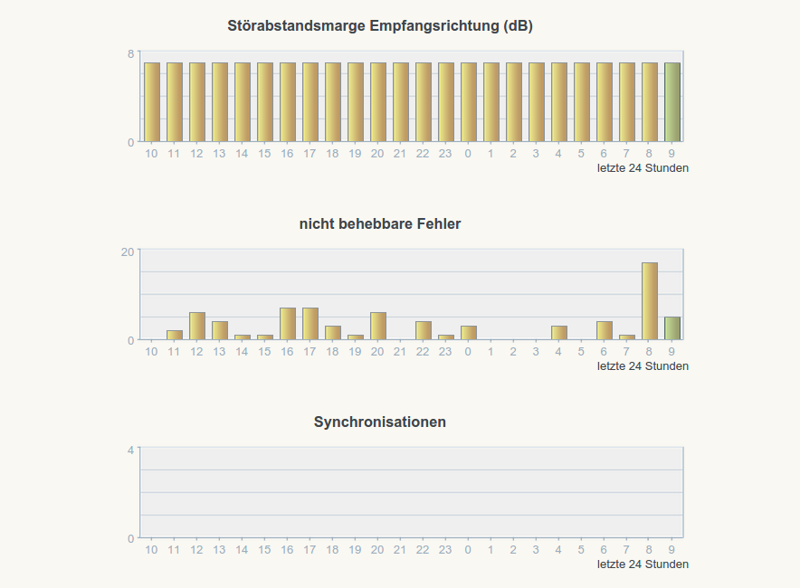 Reset und Werkeinstellungen brachten keinen Erfolg. Der Provider sagt die Leitung sei ok (was die Fritzbox auch bestätigt) und von AVM habe ich bislang keine Antwort.