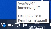 Sollte es aber nicht so sein, dass die VPN Verbindung den Internetzugriff über die Fritzbox blockiert, damit der Traffic ausschließlich über den VPN Tunnel läuft? Auf meinem Standrechner passiert nämlich genau das (siehe Bild 2)