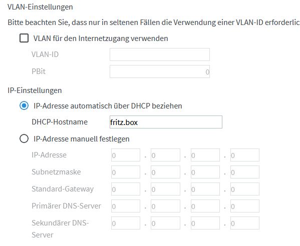 Die andere Fritz Box kann frei konfiguriert werden.