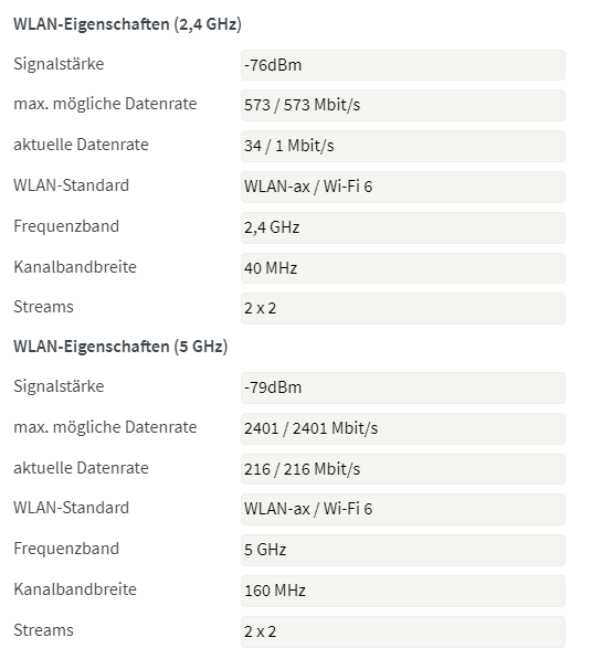 7H0M45 schrieb:Edit: Hier die Bilder vom Handy. Sofern ich das richtig interpretiere hat der 1200AX mit -42dB eigentlich die beste Signalstärke. Von der Anordnung her wie sie jetzt liegen wäre das auch nachvollziehbar. Trotzdem wechselt das Handy nicht obwohl es das prinzipiell könnte (Xiaomi Mi9 mit aktuellsten Updates)
