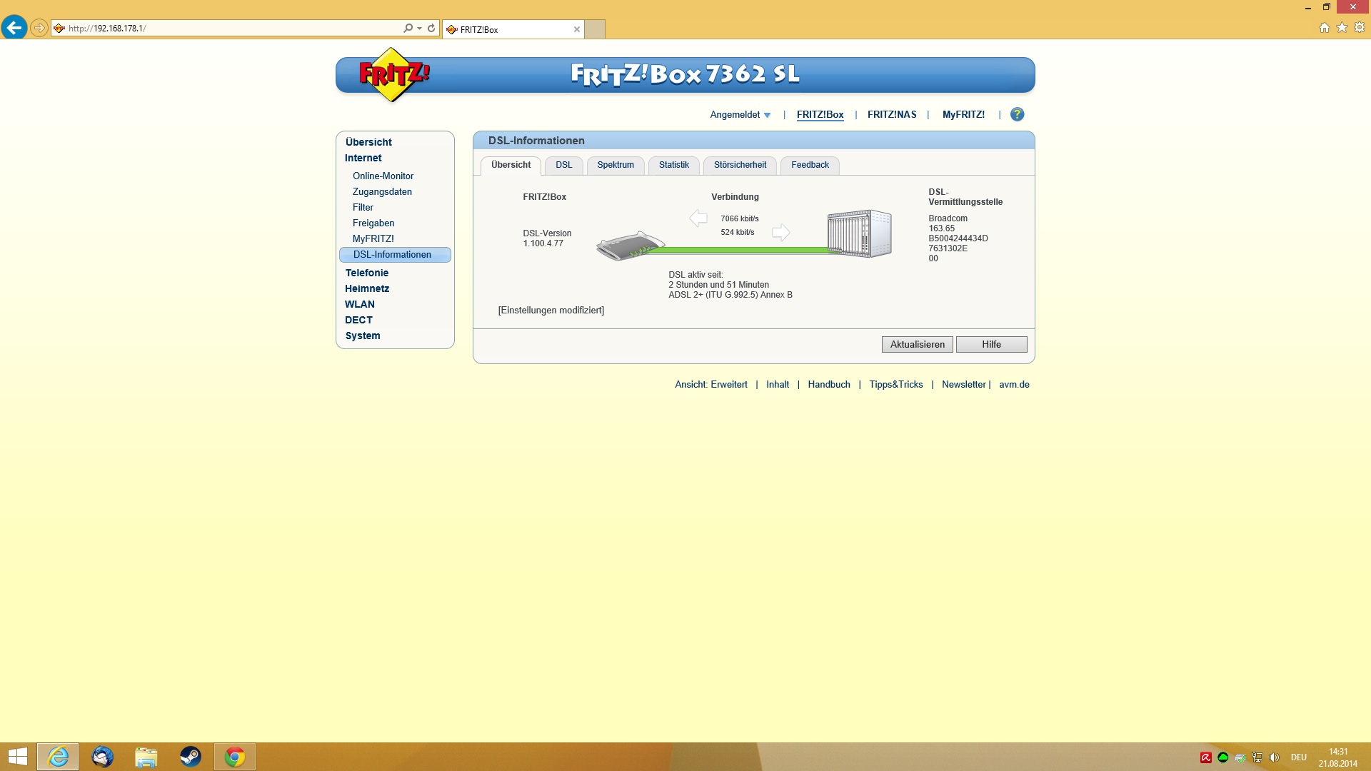 Kannst ja mal nen Screenshot der Leitungswerte von der Fritz!Box machen. Davor und danach, wenn's geht heisst's...