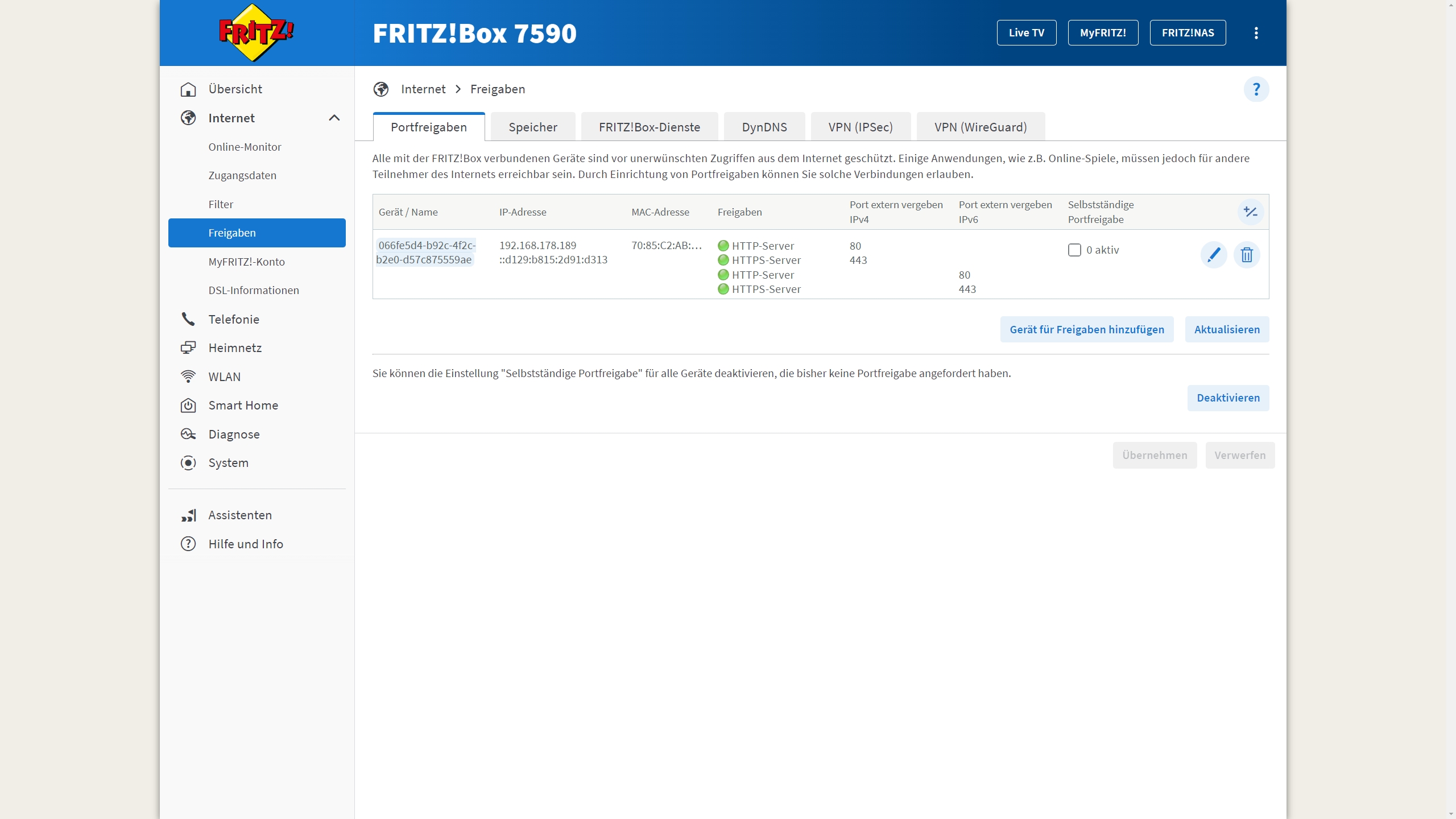 ich habe die 7590 aktuelle Firmware und bekomme eine ganz einfach Portfreigabe nicht hin :-(