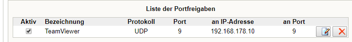 ich möchte mit TeamViewer meinen PC von unterwegs starten können per WOL. Dafür sieht TeamViewer den Port 9 vor. Diesen gebe ich bei meiner FritzBox 3131 ein aber er öffnet sich nicht