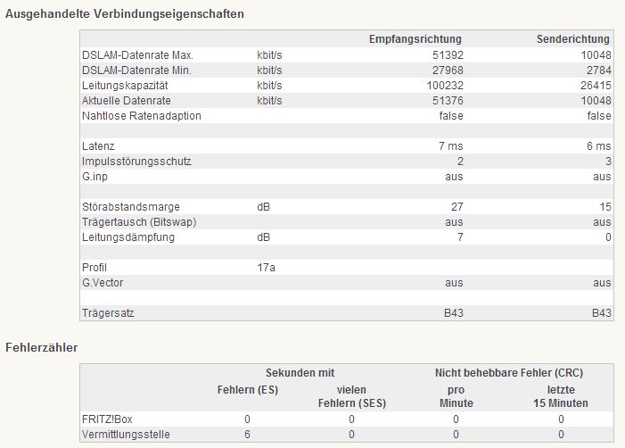laut meiner Fritzbox habe ich eine Leitungskapazität von 100mbit.