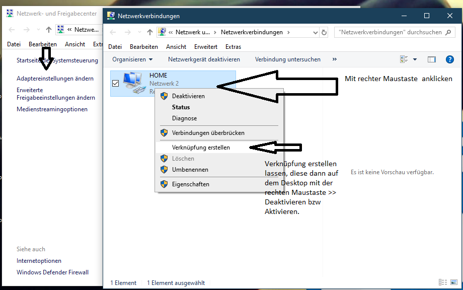 Was ich aber nicht verstehe ist: Klicke ich auf Desktopverknüpfung des Ethernets wenn ich online bin dann wird es nur wieder aktiviert als wenn ich die Verbindung mit dem Internet herstelle und nur wenn ich in den Ordner "Netzwerkverbindungen" gehe und dann die Desktopverknüpfung doppelklicke dann kommt das Fenster wo ich die Verbindung deaktivieren kann.