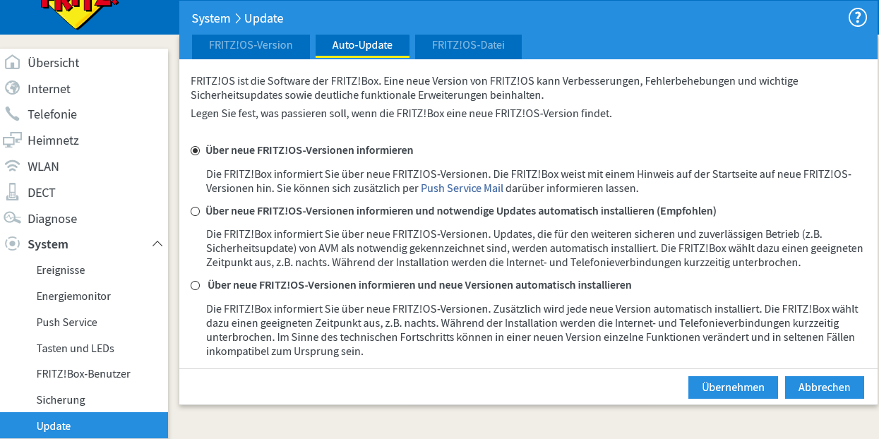Ich möchte gerne selbst entscheiden, ob und wann ich eine FritzOS-Version aufspielen möchte.