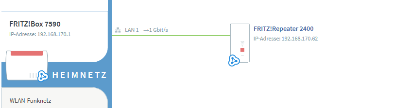 habe eine Fritzbox 7590 und mit RJ45 einen AVM Wlan Repeater angehängt. Auch ins Mesh laut Anleitung hinzugefügt. Wird auch korrekt als Mesh in der Oberfläche Angezeigt.